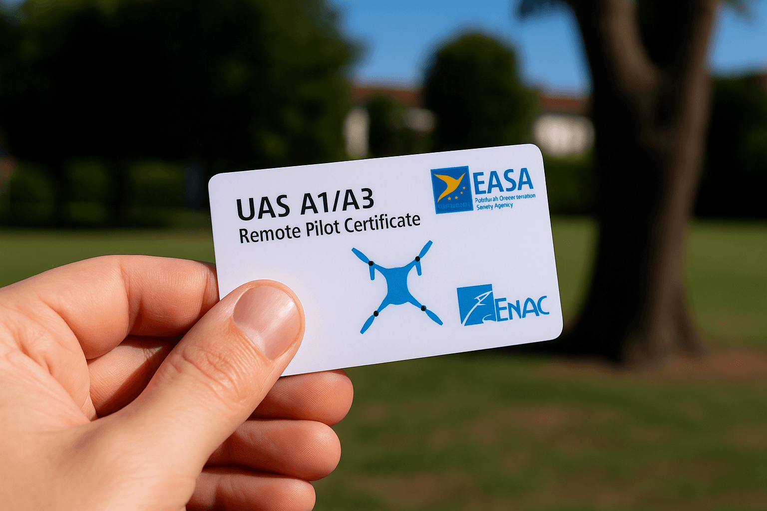 Certificazione europea obbligatoria per operare droni in scenari Open A1 e A3.